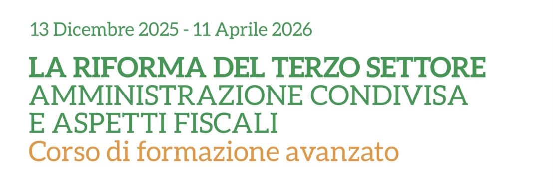 La nuova edizione del corso avanzato “La Riforma del terzo settore. Amministrazione condivisa e aspetti fiscali” si apre il 13 dicembre a Pisa alla Scuola Sant’Anna di Pisa con una sessione in presenza dedicata all’inquadramento generale del tema dell’amministrazione condivisa e proseguirà con sessioni online e in presenza fino all’11 aprile. Il corso è organizzato da Cesvot, Scuola Superiore Sant’Anna e Centro di ricerca Maria Eletta Martini e approfondisce i temi centrali della Riforma del terzo settore, con particolare attenzione agli strumenti di amministrazione condivisa (co-programmazione, co-progettazione e convenzioni) e agli aspetti fiscali e normativi più recenti riguardanti enti del terzo settore e imprese sociali.